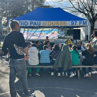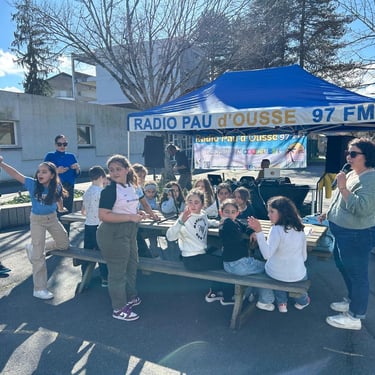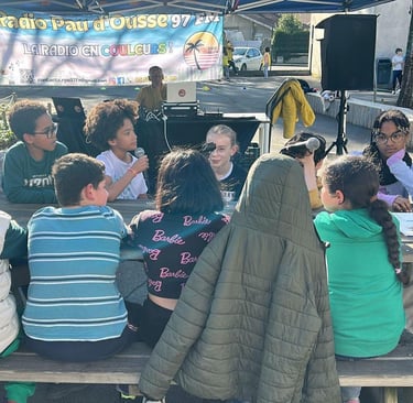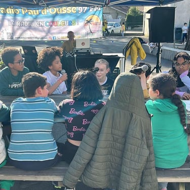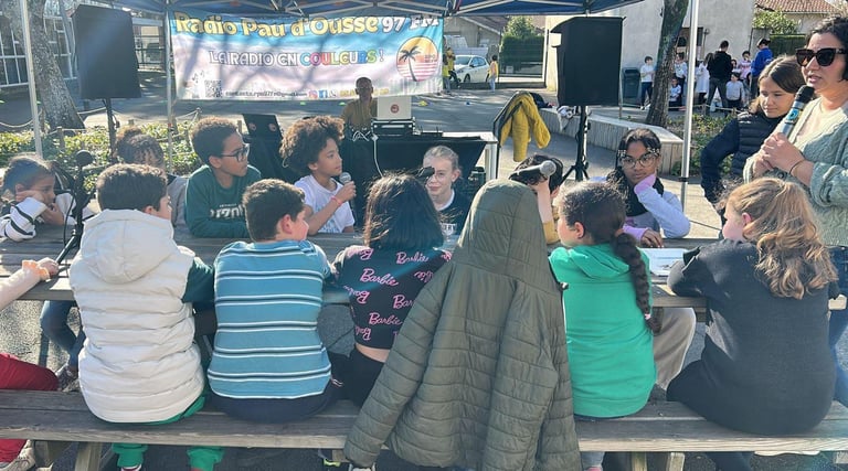 EN DIRECT de la cour d’école de Pierre et Marie Curie , Pour l'émission l'antenne des martiens ,avec José , Nina , et Rémi de Radio Pau d’Ousse et Une cinquantaine d’enfants des sites périscolaires de Lapuyade, Pierre et Marie Curie, Lavigne, Trianon, 4 Coins du Monde, Marca débattent autour de la discrimination et de l’inclusion dans le cadre de Mars Attaque !