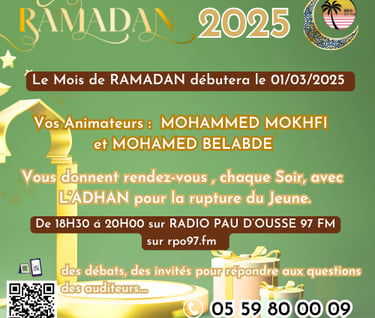 Vous donnent rendez-vous , chaque années, chaque Soir, avec L’ADHAN pour la rupture du Jeune.